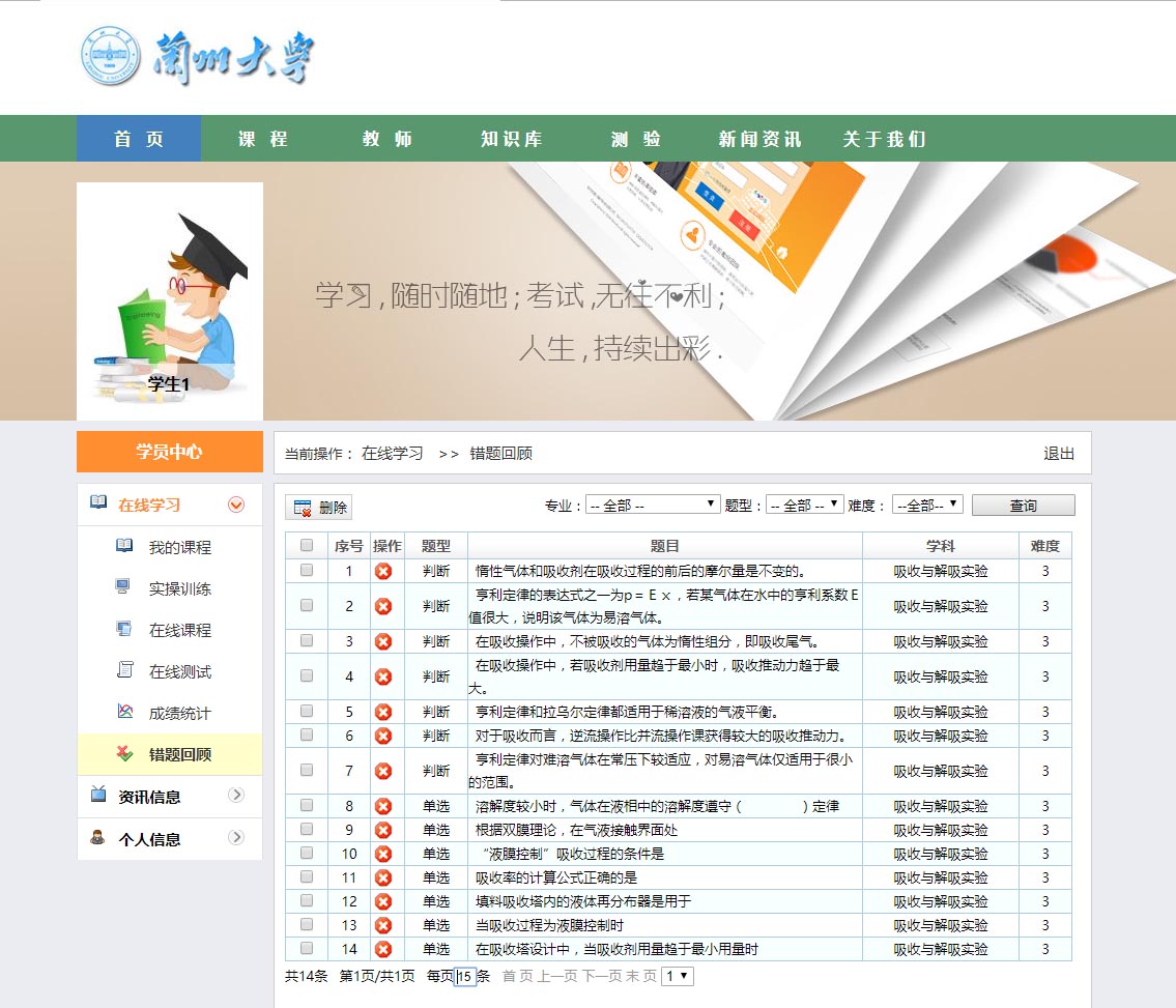 系統的主要功能可以理解為在線“學習與測評”。它的主要功能也集中在兩點,一是學習培訓;二是考試。在學習培訓部分,首先是老師編排課程,然后學生選擇相應課程學習??荚嚥糠?,則由老師錄入試題,隨機生成試卷,學生參加考試。通過記錄學員在線上參加的理論學習、考試、錯題回顧等情況,實現對學員學習情況的全程跟蹤管理和對學生培訓需求的全面掌握。