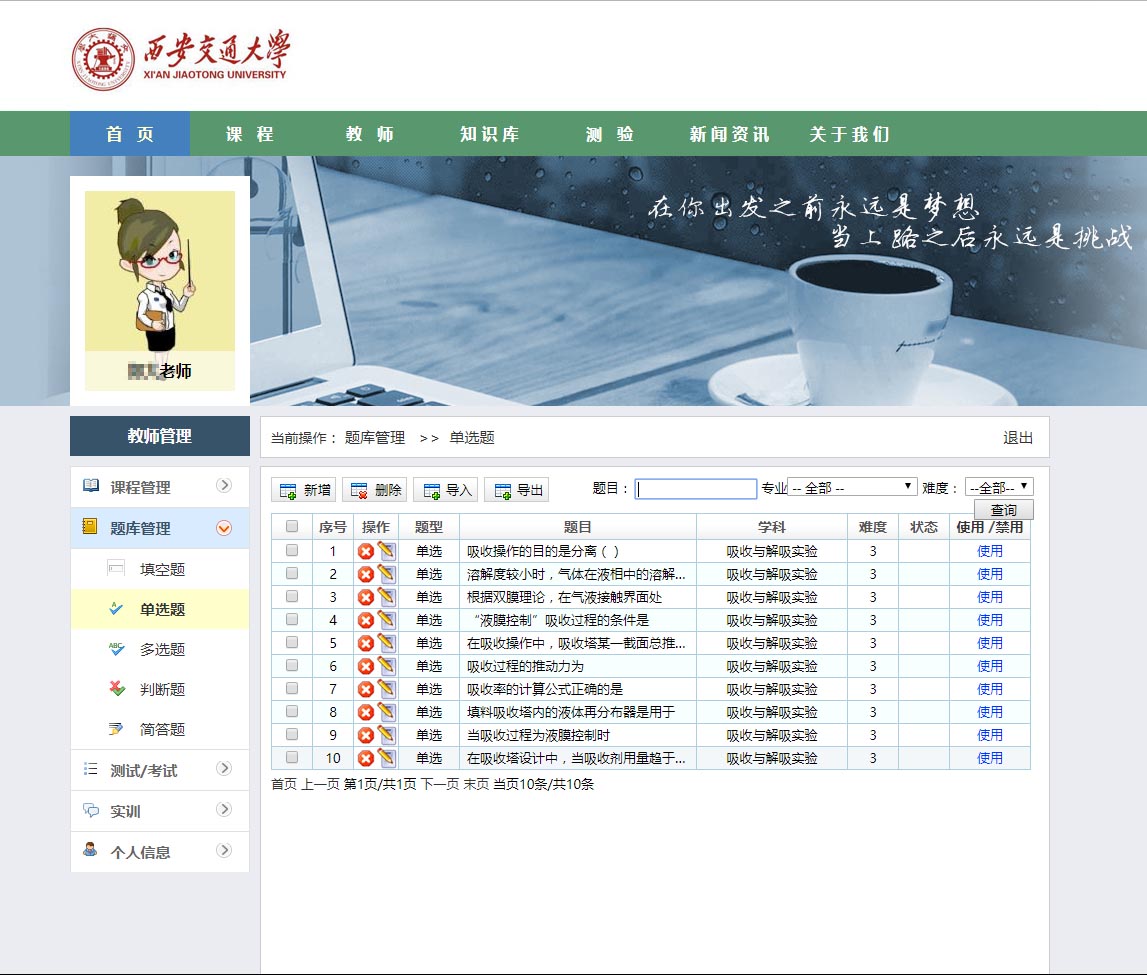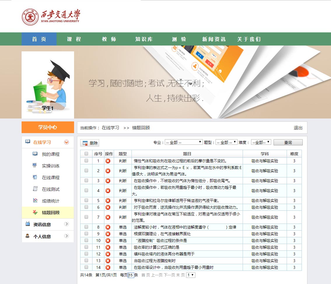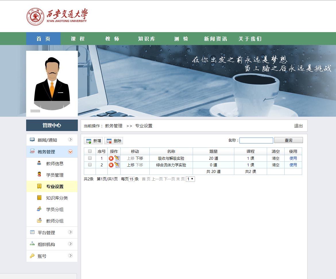 系統的主要功能可以理解為在線“學習與測評”。它的主要功能也集中在兩點,一是學習培訓;二是考試。在學習培訓部分,首先是老師編排課程,然后學生選擇相應課程學習。考試部分,則由老師錄入試題,隨機生成試卷,學生參加考試。通過記錄學員在線上參加的理論學習、考試、錯題回顧等情況,實現對學員學習情況的全程跟蹤管理和對學生培訓需求的全面掌握。