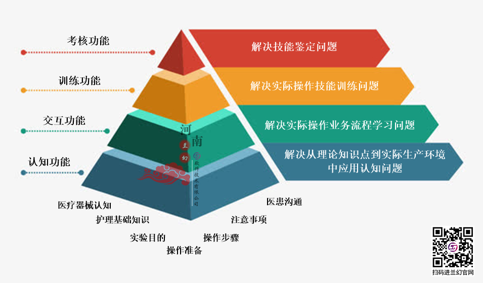 護理虛擬仿真系統(tǒng)解決的問題:1.認知功能——解決從理論知識點到實際生產(chǎn)環(huán)境中應(yīng)用認識問題。2.交互功能——解決實際操作業(yè)務(wù)流程認知學(xué)習(xí)的問題。3.訓(xùn)練功能——解決實際操作技能訓(xùn)練的問題。4.考核功能——解決技能鑒定問題。